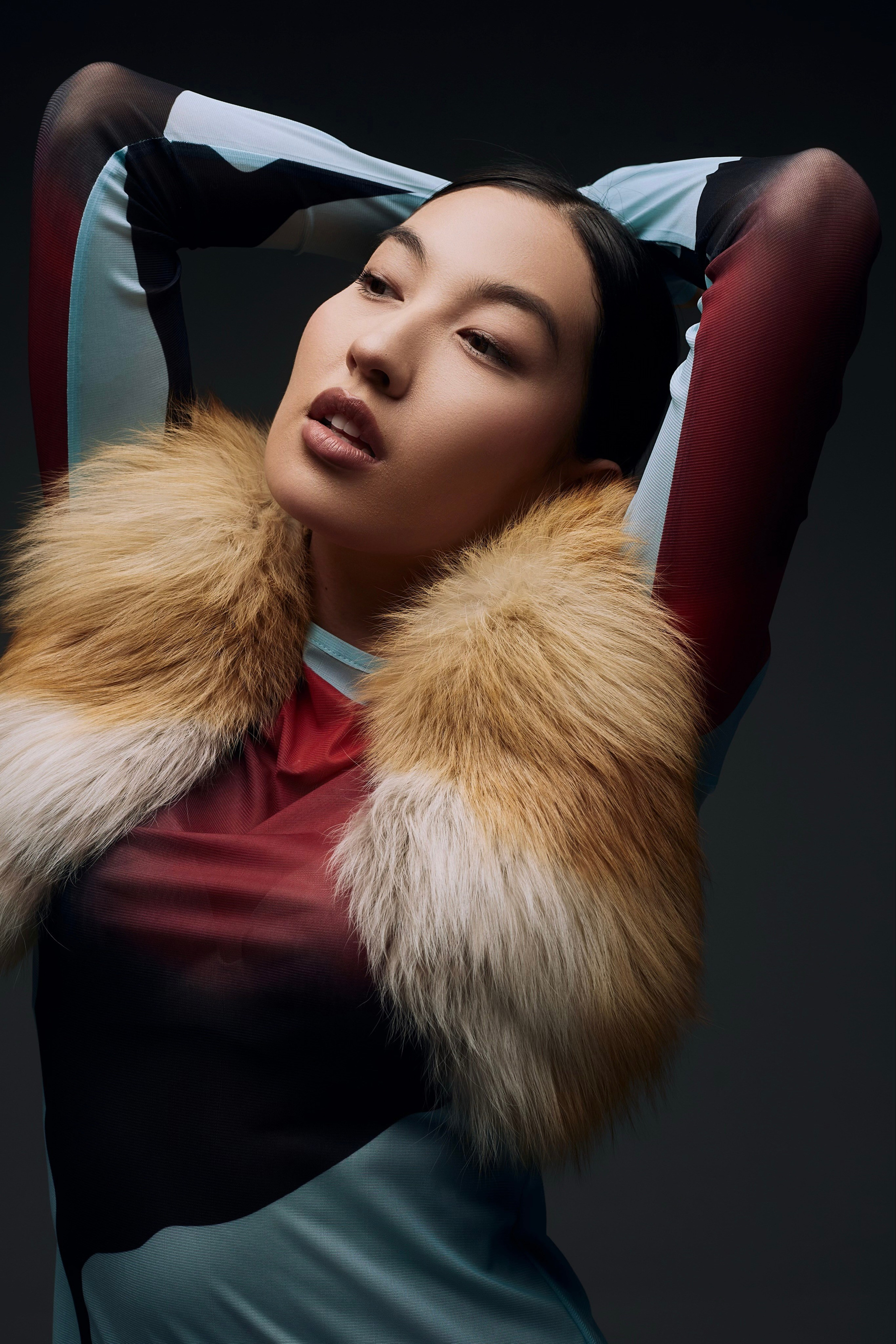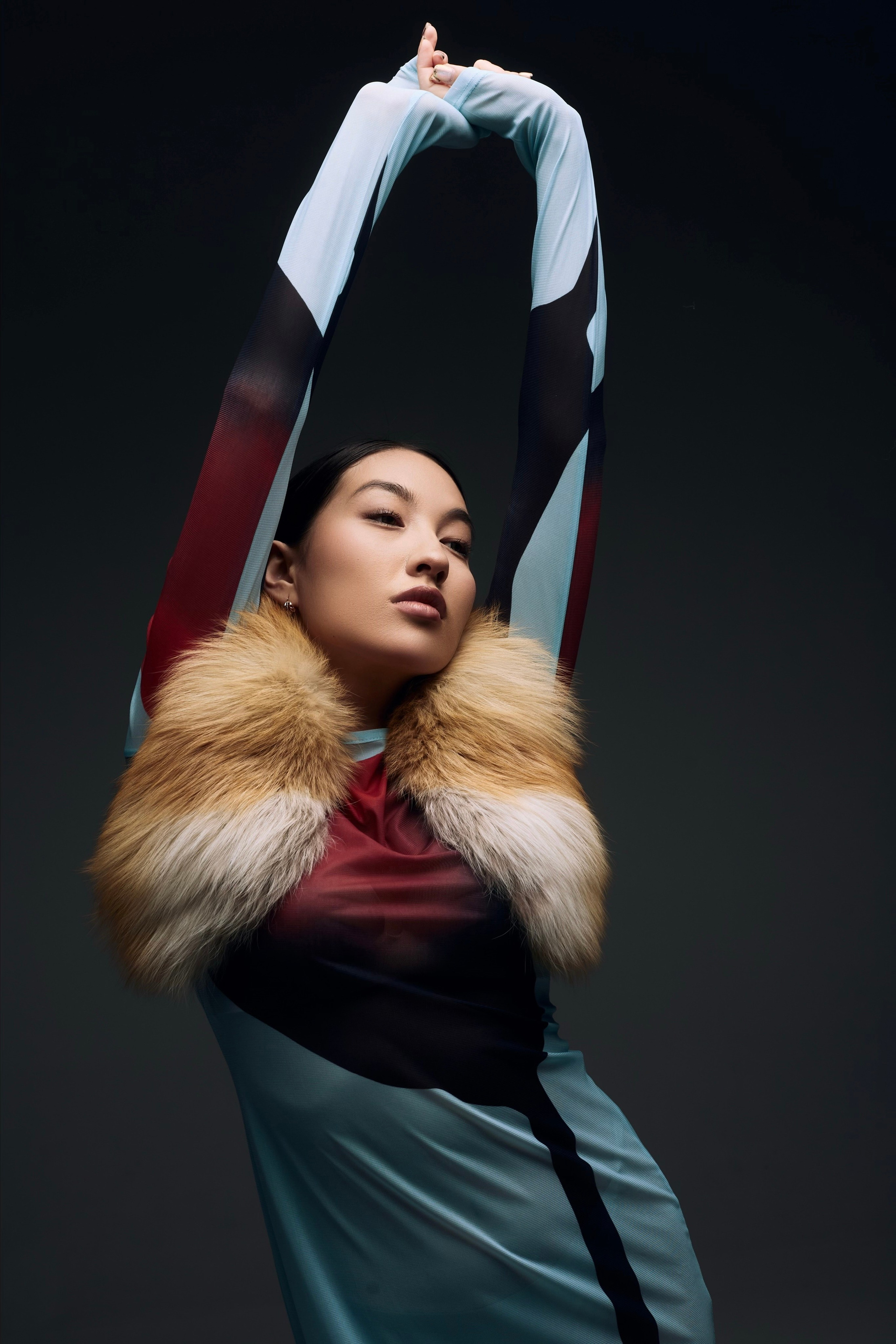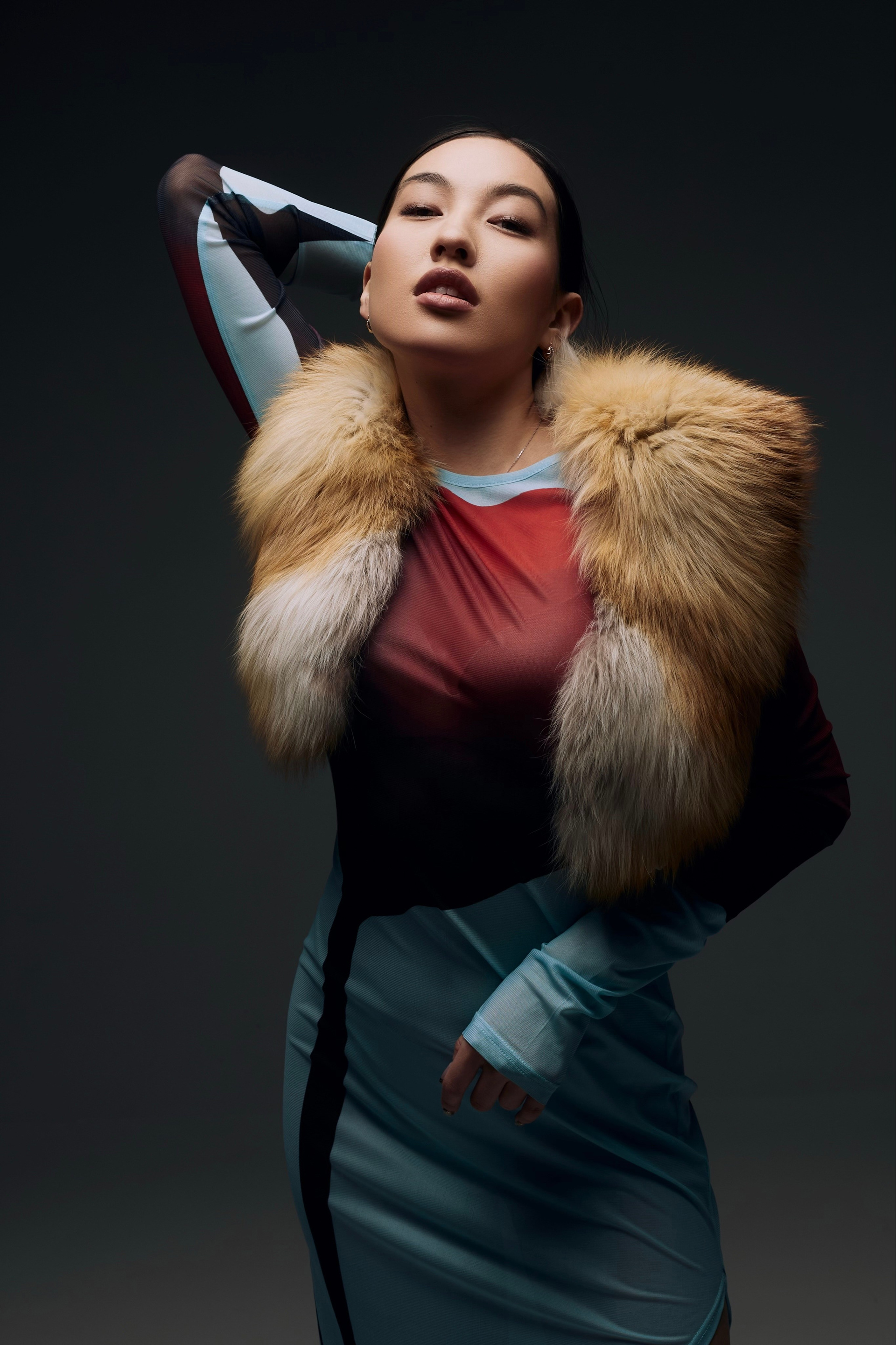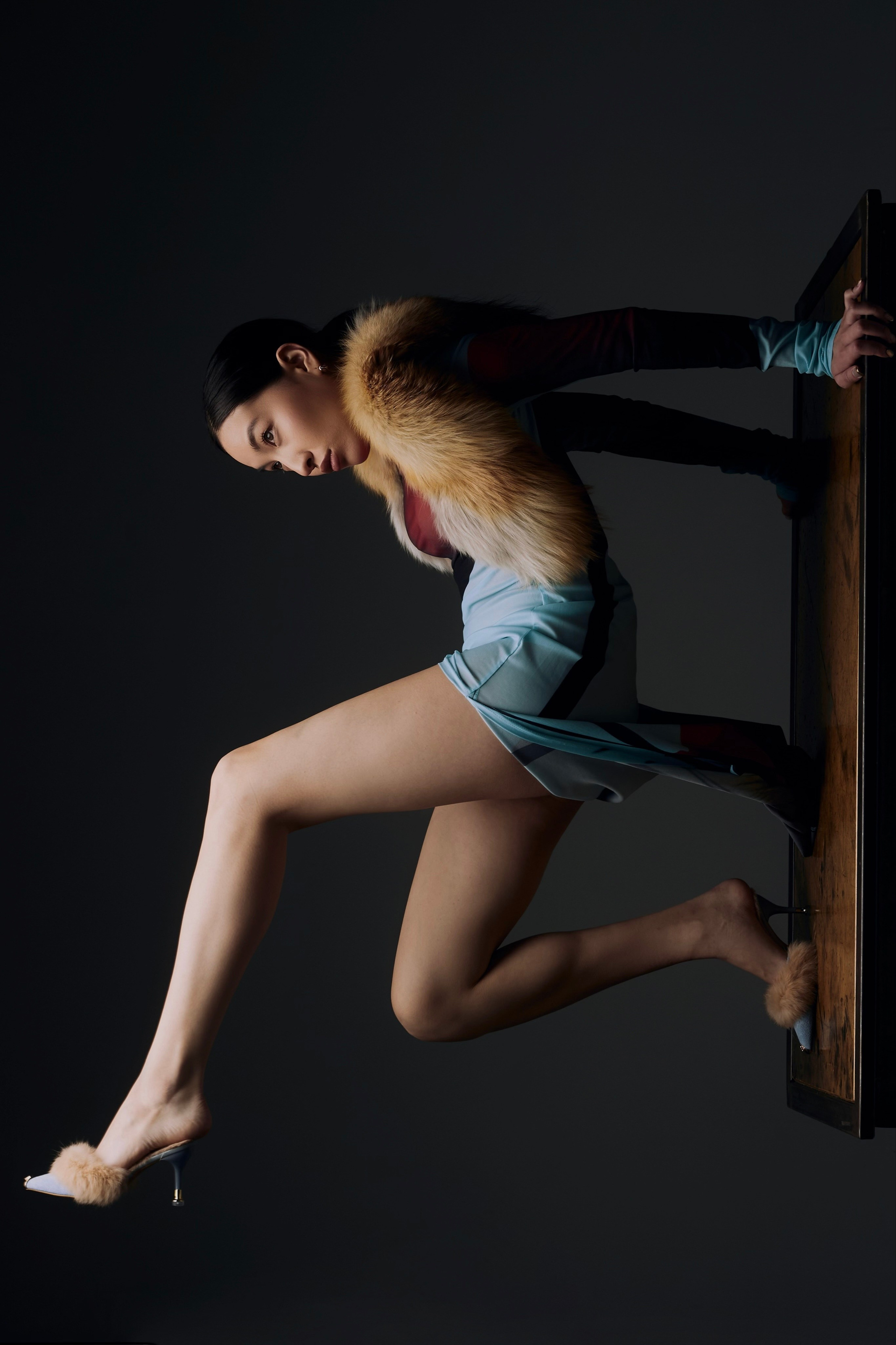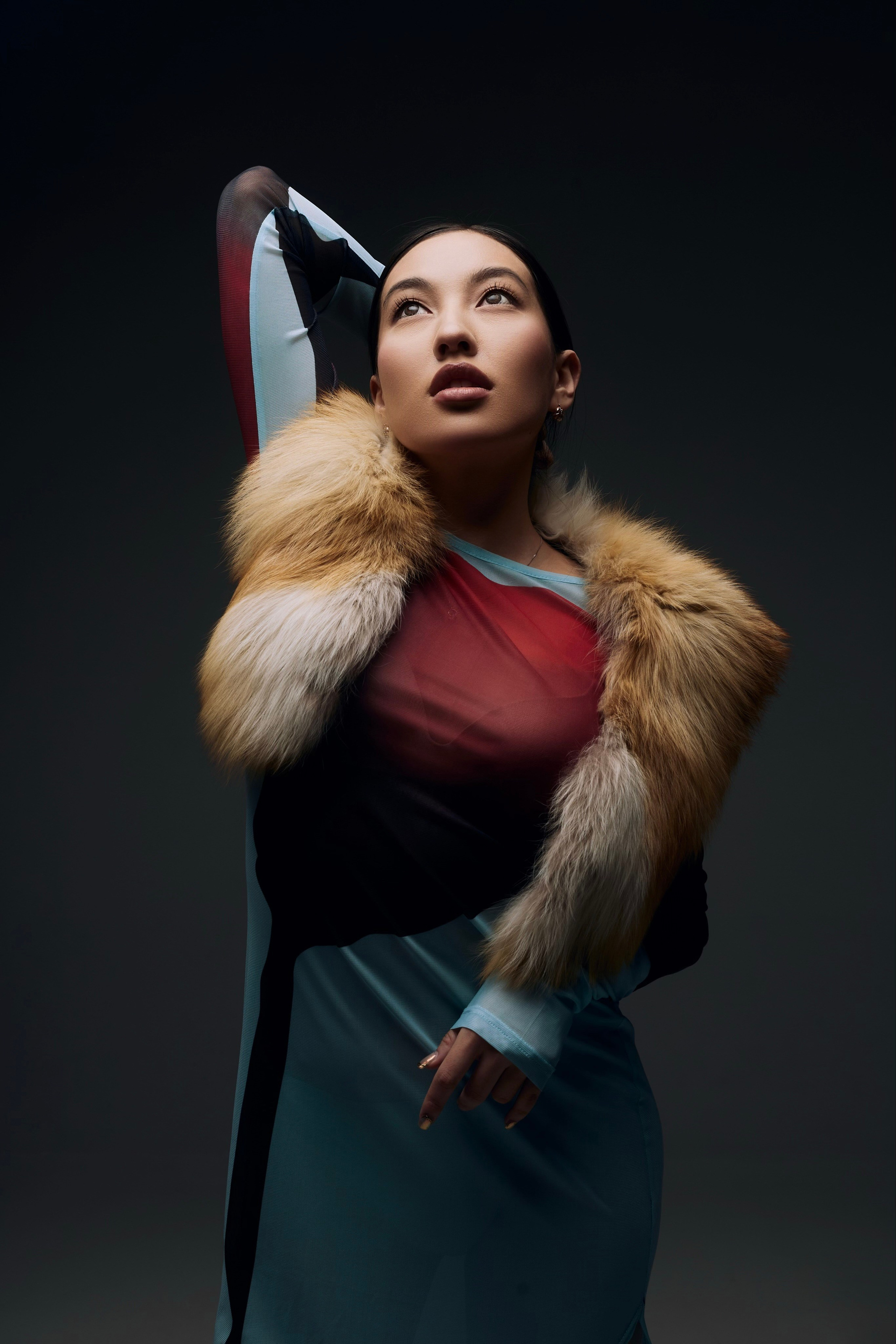 Образ для съемки собирались в ренте, которые соседничает с фотостудией. Я сначала увидела платье, потом мюли и поняла, что образ прекрасно дополнит меховуся) Образ прекрасно подходит по вайбу модели и типажу, ведь она у нас Якутяночка!
